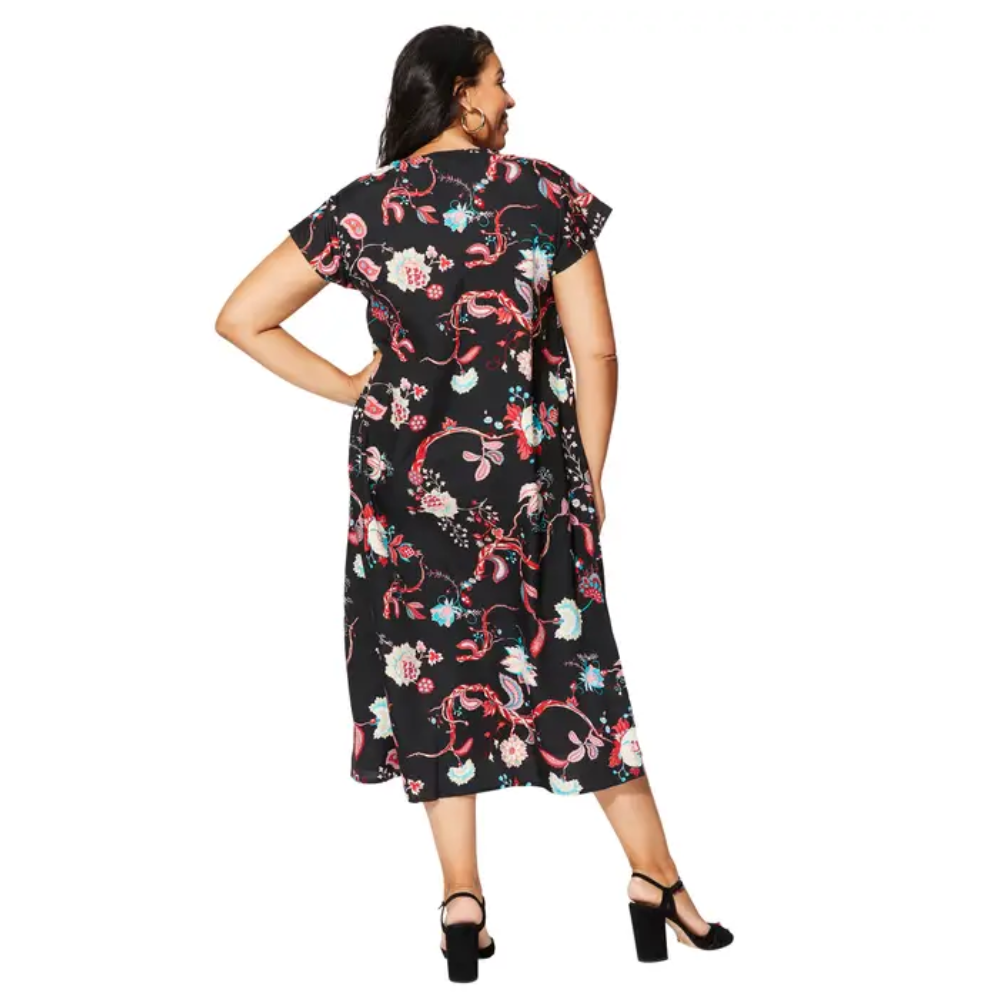 Kukallinen lyhyt mekko, värikäs, Plus sizes