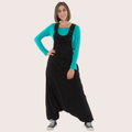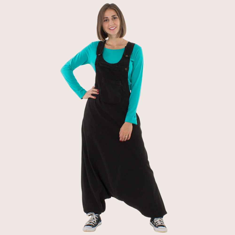 Puuvillaiset haaremihaalarit eivät kiristä. Haalareiden sivussa on napit jotka helpottavat pukemista. Olkaimissa myös säätelyssä varaa. Sivutaskut ja edessä yksi avotasku.