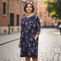 Mekko Pihlava on erittäin löysä, laatikkomallinen mekko, mikä laskeutuu kauniisti. Mekossa on 2/3 hihat ja olkapään saumat laskeutuvat reilusti alas. Sivuissa on taskut. Tämä Pihlava Silk-mallisto on erittäin laadukasta, silkinomaista luomupuuvilla/elastaania.